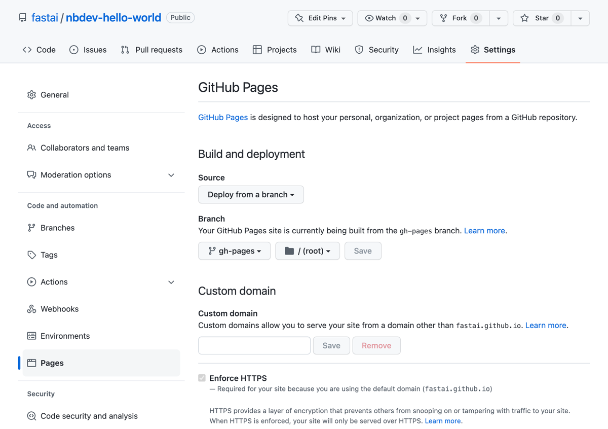 - Scroll down to the “GitHub Pages” section.
